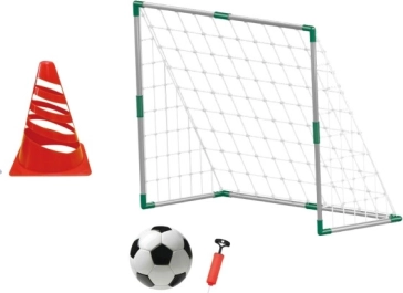 - Cage avec filet, ballon de football, pompe, cône d’entraînement