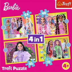 Puzzle Barbie Monde Joyeux 4-en-1 propose quatre images uniques de 285 x 205 mm. Chaque puzzle a un nombre de pièces différent (35, 48, 54, 70), offrant des défis adaptés aux petits amateurs de puzzles de niveaux variés. Fabriqué en Pologne à partir de matériaux écologiques, ce produit est idéal pour les enfants à partir de 4 ans.