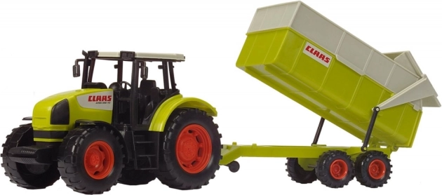 Tracteur Claas Ares sans propulsion, avec remorque mobile et basculante.