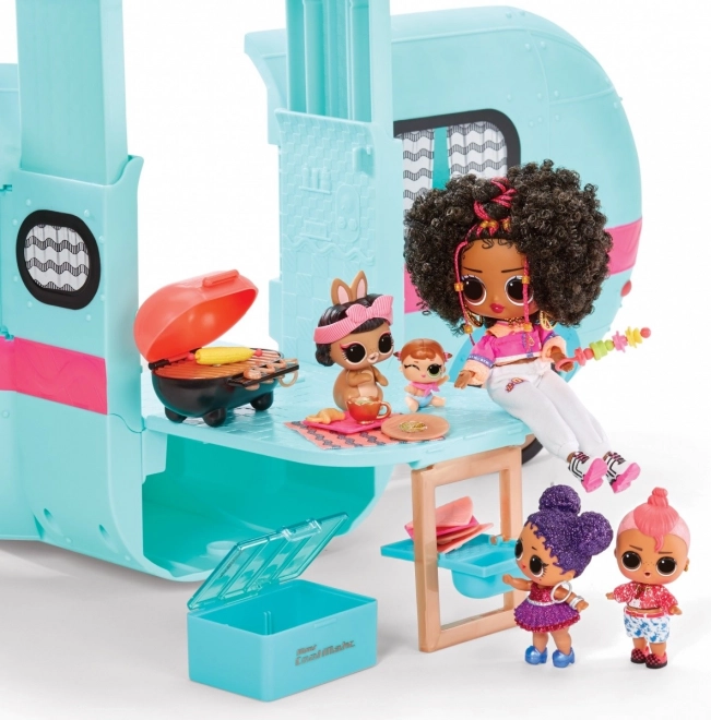 L.O.L. Surprise! Glam N' Go Camper est le véhicule le plus incroyable pour vos poupées L.O.L. Surprise, leur permettant de voyager avec un style inégalé. Le camping-car contient plus de 50 surprises à déballer, plus de 10 espaces de jeu et peut accueillir les poupées de mode LOL Surprise OMG ainsi que les poupées LOL Surprise. L’arrière du camping-car s’ouvre. Une fois le jeu terminé, tous les accessoires et objets peuvent être rangés à l’intérieur.