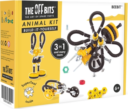 Découvrez le jeu de construction créatif THE OFFBITS AbeilleBit 3-en-1, qui développe de façon ludique les compétences des enfants dès 6 ans. À partir de plaques colorées, de vis et d’éléments moulés, vous construirez trois modèles – une abeille, un robot et une moto. Le set stimule la créativité, la motricité fine, la pensée logique et offre d’infinies possibilités de construction grâce à sa compatibilité avec des objets courants de la maison.