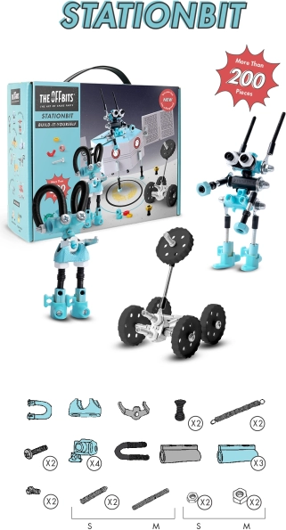 Construisez votre propre station interstellaire avec le kit OffBits StationBit et explorez l’infini de l’espace. Avec plus de 200 pièces, des outils pratiques et un emballage polyvalent qui se transforme en module de jeu, ce set propose 3 modèles dans le guide et des possibilités infinies pour votre imagination. Il favorise la créativité, la motricité fine et la pensée logique, est compatible avec des objets du quotidien et convient idéalement aux enfants dès 8 ans.