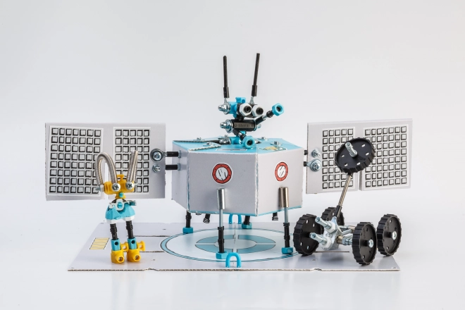 Le set permet d’assembler, selon le guide, 3 modèles – l’astronaute SaturnBit, DroidBit et RoverBit – tout en laissant de la place à vos propres inventions uniques. La compatibilité avec des objets du quotidien (p. ex. carton, autres vis et petits accessoires) étend les possibilités de jeu à l’infini et développe l’imagination des enfants.