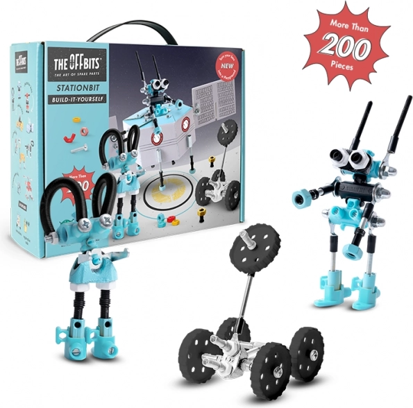 Transformez vis, écrous et pièces moulées en une impressionnante station spatiale. OffBits StationBit apporte un apprentissage ludique STEM – les enfants découvrent de manière amusante les principes de la science, de la technologie, de l’ingénierie, de l’art et des mathématiques. Grâce à plus de 200 composants colorés, des autocollants et un emballage astucieux zéro déchet qui devient partie intégrante du jeu, un riche univers de création et de découverte prend vie.