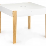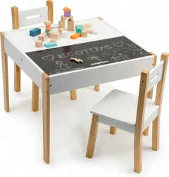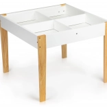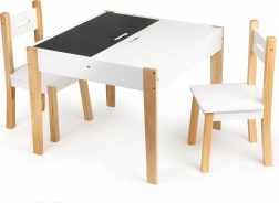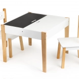 Après le jeu, tous les jouets peuvent être facilement rangés sous le plateau amovible. L'ensemble comprend deux chaises confortables avec des pieds en pin.
