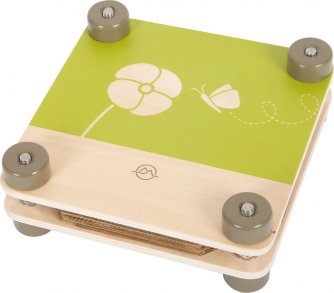 Découvrez le monde créatif des fleurs séchées avec une presse pour enfants en bois certifié FSC. Conception robuste, utilisation facile grâce à quatre vis, et riche équipement avec 8 feuilles de carton et 16 feuilles de papier pour beaucoup de plaisir et de beaux résultats créatifs.