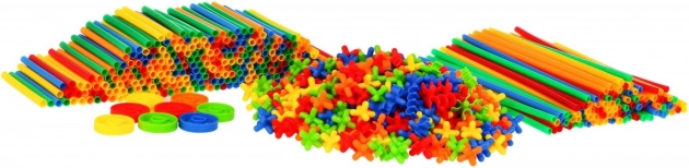 | - 100 pailles longues, - 300 pailles courtes, - 400 éléments de connexion de formes diverses, - boîte à clipser, - manuel illustré. | ||