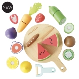 Ce set de qualité pour petits chefs offre un jeu réaliste plein de fantaisie. Il comprend une planche en bois naturel, un éplucheur, un couteau et une sélection d’aliments appétissants qui peuvent être facilement « découpés » et recomposés grâce au velcro. Idéal pour développer la coordination, la motricité fine et le jeu de rôle.