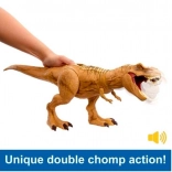 En appuyant sur le bouton, le T‑Rex ouvre la gueule et tourne la tête sur le côté, accompagné d’un rugissement de dinosaure réaliste inspiré des films Jurassic World.