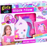 Kit créatif pour fabriquer un coussin à sequins licorne. Créez votre propre coussin doux et stylé avec un motif de licorne magique. Ce kit permet aux enfants de réaliser eux‑mêmes une décoration pour leur chambre.