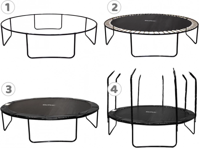• Matériaux résistants : toile de saut PP avec 8 coutures, ressorts oxydés, cadre en acier