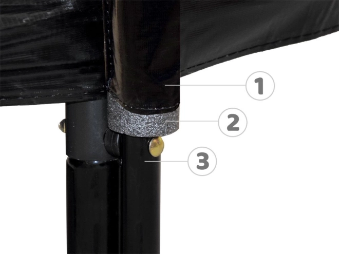 Le filet de protection haut, tendu par un anneau, conserve sa forme; l’entrée est sécurisée par un zip et une boucle. Les montants métalliques profilés sont dotés d’un rembourrage souple pour des sauts en toute sécurité.
