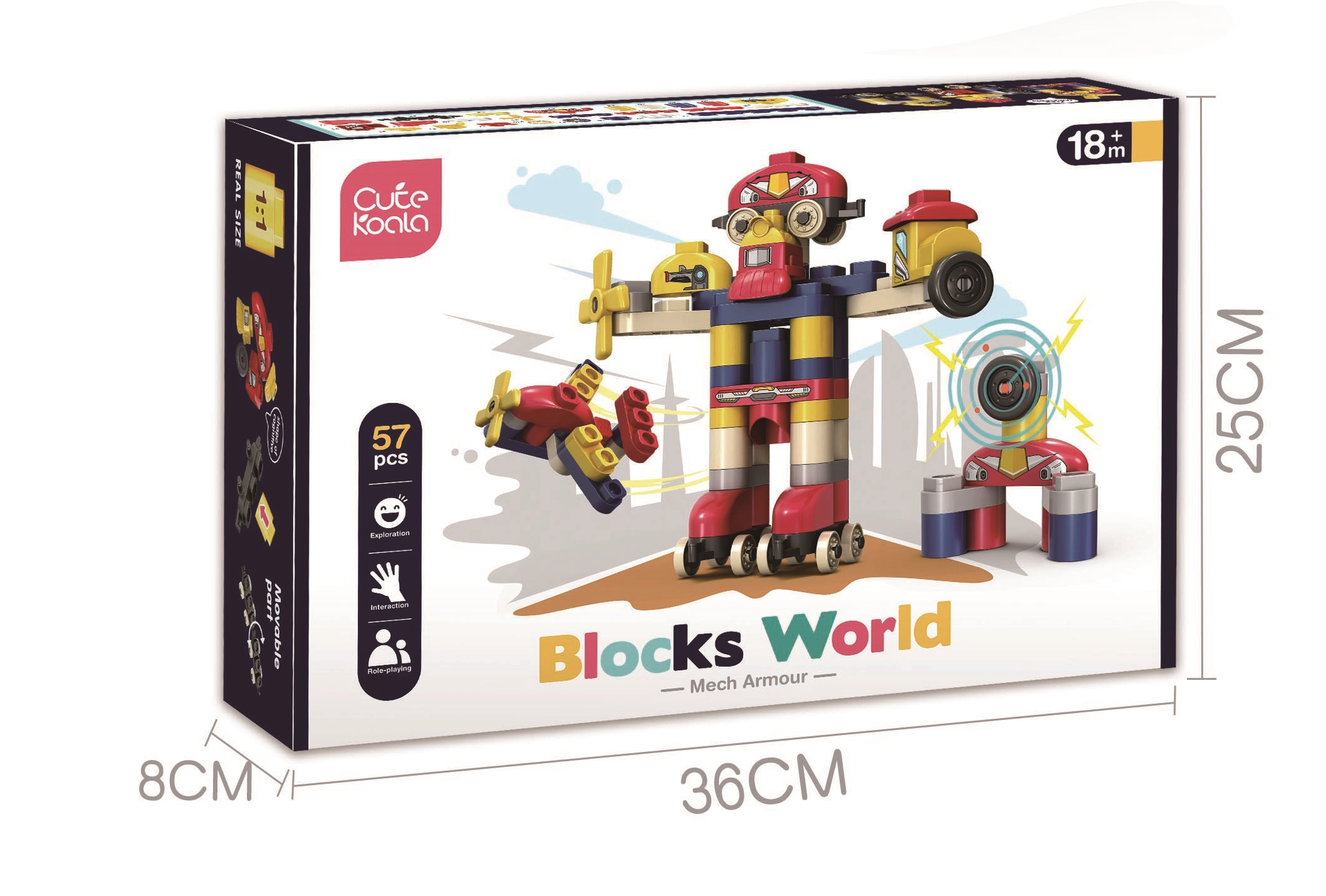 Briques de style DUPLO permettant d’assembler un robot, un avion. Grâce aux briques et aux images qui y sont collées, l’enfant pourra apprendre.