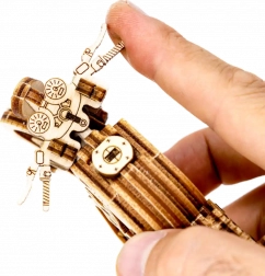 Construisez une élégante moto Café Racer en contreplaqué naturel et profitez de sa mécanique fonctionnelle. Grâce à la marche arrière et au moteur à élastique, le modèle parcourt jusqu’à 1 mètre, dispose de roues caoutchoutées, d’un mécanisme à volant d’inertie et de commandes réalistes. Le montage se fait sans colle ni outils et l’emballage sert de support.