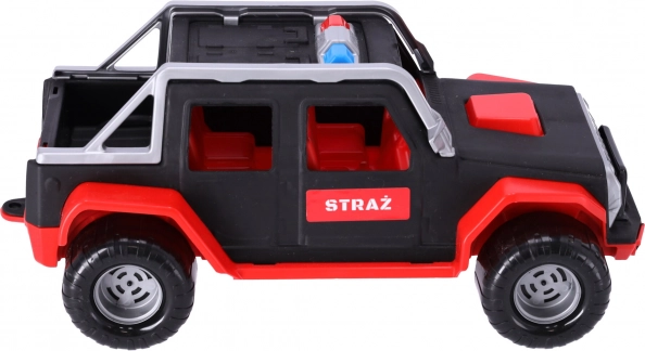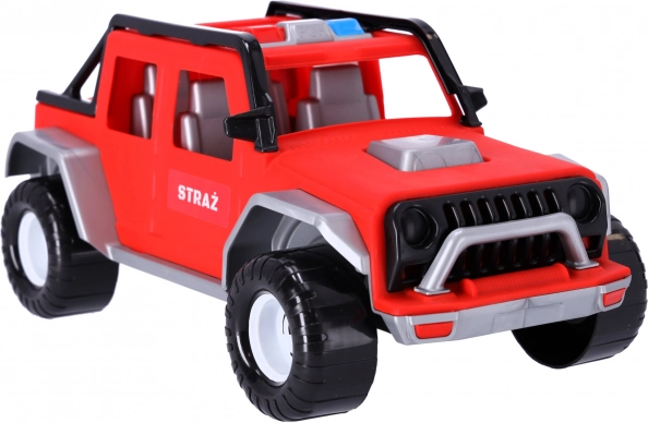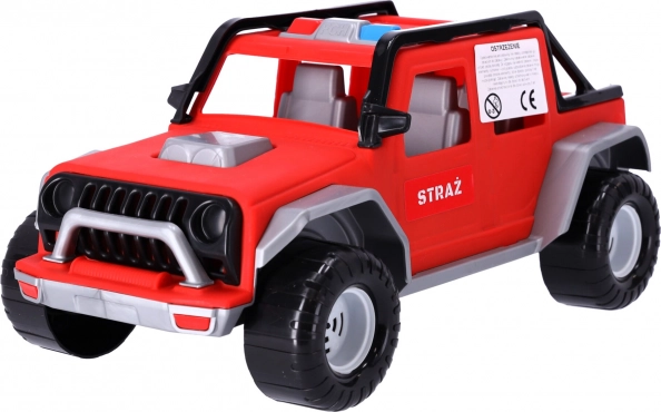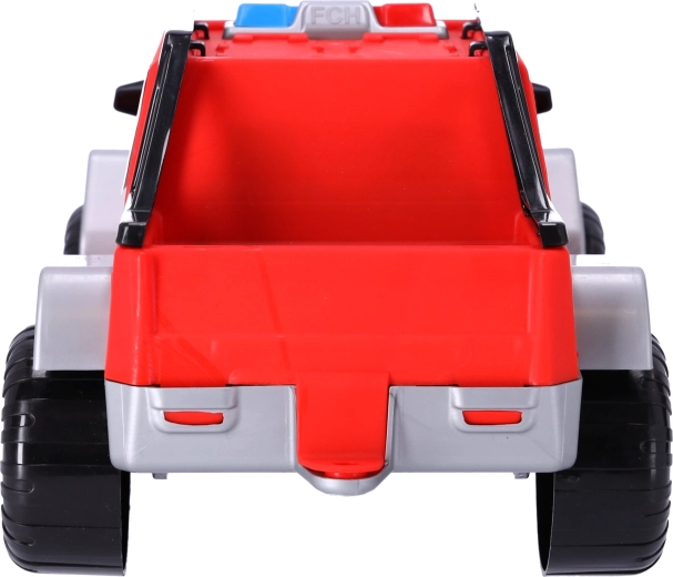 Ce véhicule complétera la collection d’engins d’intervention et plaira aux petits pompiers. Le jouet convient aux enfants de plus de 3 ans. La voiture est équipée d’une transmission intégrale : il suffit que l’enfant tire puis relâche pour que la voiture avance.