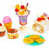 En plus du gâteau, vous trouverez dans le set d'autres sucreries colorées, telles que des cornets de glace, des croissants et des cupcakes, qui renforcent la crédibilité et enrichissent le jeu. Les enfants peuvent développer leur imagination et leur motricité fine en arrangeant et en servant ces délices.