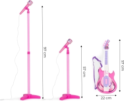 Nous vous présentons un excellent ensemble musical pour enfants comprenant une guitare électrique et un microphone avec support. Avec cet ensemble, vos enfants peuvent facilement devenir les stars du concert. Le jouet stimule non seulement l'intérêt pour la musique, mais aussi stimule la créativité et améliore la coordination.