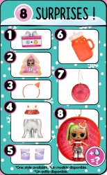 Chaque boule rose offre la découverte progressive de 8 surprises, tenant les enfants en haleine du premier ruban arraché jusqu’au dernier accessoire.