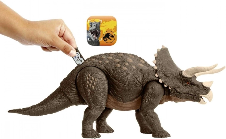 La grande figurine de TRICERATOPS de la gamme Jurassic World est fabriquée à 60 % en plastique certifié ISCC (mass balance), mesure environ 43 cm de long et offre des pattes, une queue, une tête et des mâchoires articulées. Grâce à l’application Jurassic World Facts, elle prend vie en réalité augmentée (AR) et apporte un divertissement interactif aux enfants dès 4 ans. La démarche écologique est renforcée par un emballage recyclé FSC imprimé avec des encres d’origine végétale.