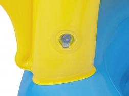 La piscine se vante d'un design joyeux avec un soleil jaune et un fond bleu avec des nuages qui captivera chaque enfant.