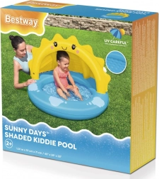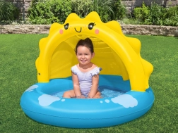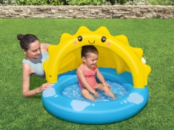 La piscine gonflable Bestway est le choix parfait pour vos enfants pendant les chauds jours d'été. Grâce à son design amical avec un soleil et des nuages bleus, elle offre non seulement plaisir de jeu mais aussi un refuge sûr contre le soleil.
