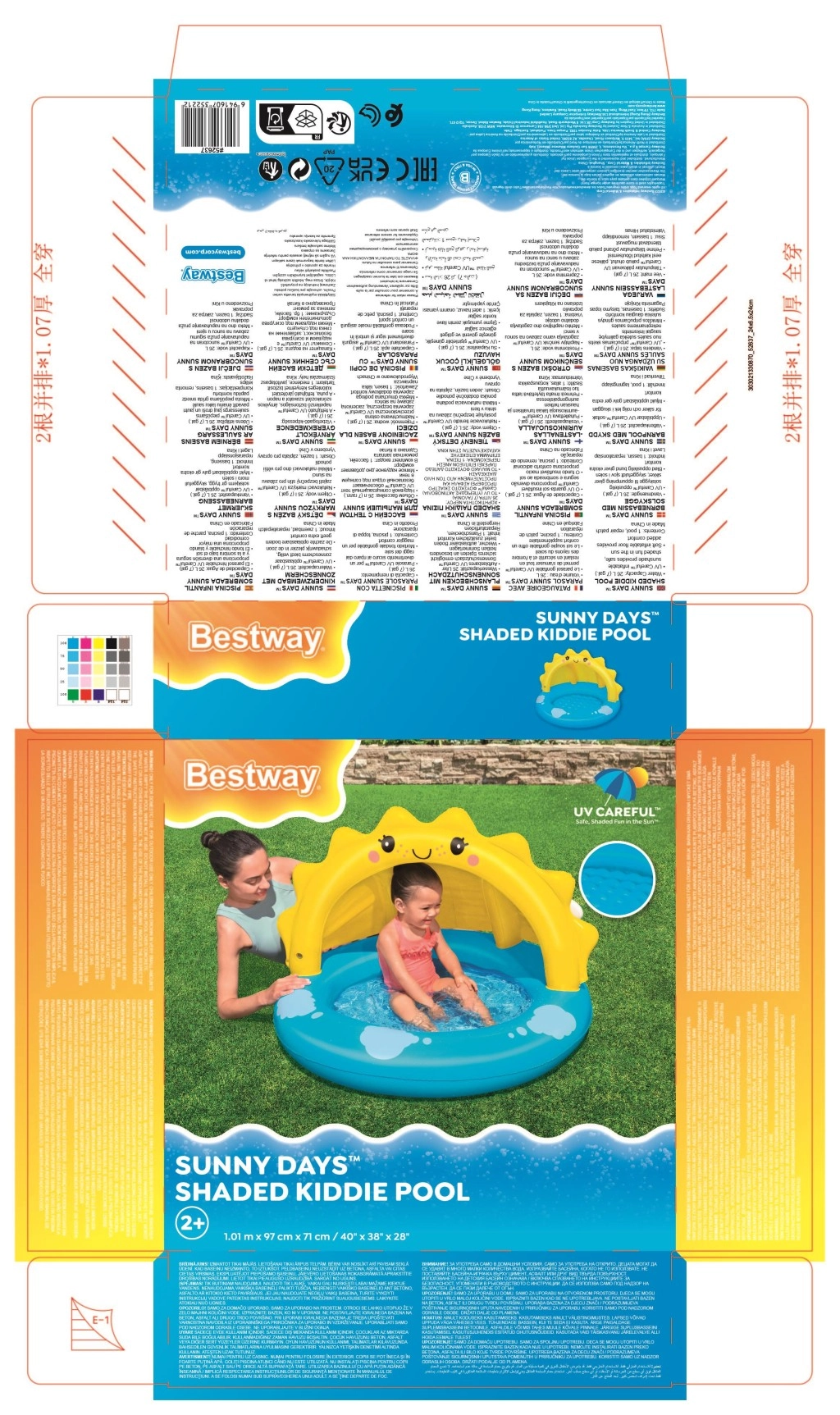 Adorable pataugeoire gonflable BESTWAY avec auvent solaire, offrant aux enfants des jeux d’eau en toute sécurité même les jours de grande chaleur. Grâce à l’auvent UV intégré, au fond gonflable doux et aux chambres à air doubles, elle est confortable, stable et protège du soleil direct. Compacte, facile à gonfler et idéale même pour les petits espaces.
