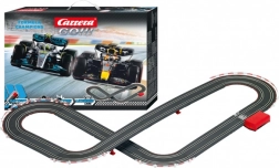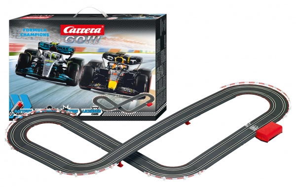 Profitez de courses palpitantes avec la piste Carrera GO à l’échelle 1:43 d’une longueur de 4,3 m. Le set inclut les voitures FERRARI F1-75 et MERCEDES-AMG F1 W13E, un tremplin, un pont et un montage facile grâce au système de clips. Il offre un système analogique, des balais de contact doubles, un aimant pour une meilleure adhérence et une alimentation possible par piles ou par transformateur. Idéal pour les enfants dès 5 ans et les adultes.