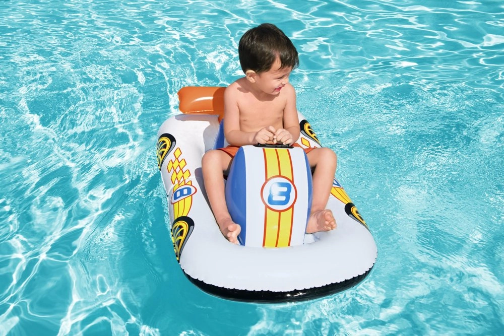 Un bateau gonflable amusant au style voiture de course ravira chaque petit nageur. Il offre un siège confortable, un fond gonflable pour plus de confort, des poignées latérales pour plus de sécurité et un matériau PVC résistant. Idéal pour les enfants dès 3 ans – léger, compact et parfait pour la piscine comme pour les vacances.