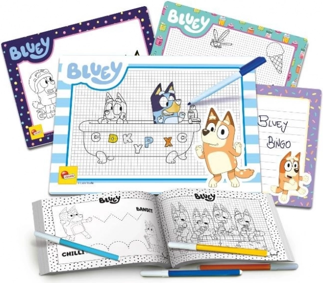 Découvrez l'École de dessin BLUEY – un kit créatif grâce auquel les enfants apprennent pas à pas à dessiner Bluey et d'autres personnages. Il comprend un cahier d'activités à difficulté progressive, 4 ardoises pour écrire et effacer pour des essais à l'infini, ainsi que des feutres inclus pour le coloriage.