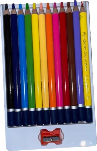 Crayons de couleur ronds en bois (crayons pastel). Fabriqués en bois certifié FSC. Mine extra épaisse et incassable de 5,5 mm de diamètre. Idéals pour les petites mains et pour un dessin intensif. La gamme de couleurs comprend 1 crayon multicolore. Longueur du crayon : 17,5 cm. L’emballage contient : 12 crayons (11 unicolores et 1 multicolore) et un taille-crayon.