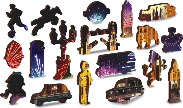 Le puzzle offre deux possibilités d'assemblage - selon l'image de Londres Nocturne ou selon le motif récurrent au verso.