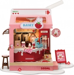 Découvrez la magie du mini-monde avec la mini-maison Bar à lait Strawberry. Cette maquette créative de Robotime séduit par ses détails réalistes, son design ludique et son agréable éclairage LED. Le montage est divertissant et le résultat sera un charmant objet déco pour une étagère ou un bureau.
