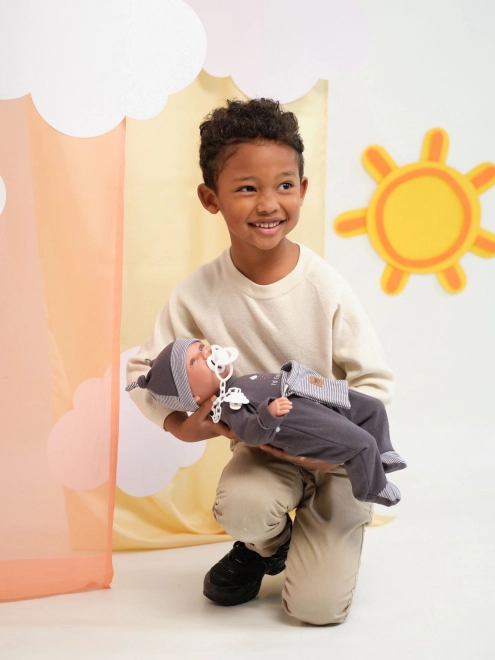 Cette adorable poupée New Born est parfaite pour les enfants qui veulent vivre une véritable expérience de soin d'un bébé. La poupée a un corps doux en tissu, procurant une sensation de véritable proximité. Les bras et les jambes sont attachés au corps par des articulations, ce qui permet un positionnement et une assise faciles. L'emballage comprend une sucette en accessoire, parfaitement intégrée à chaque jeu.