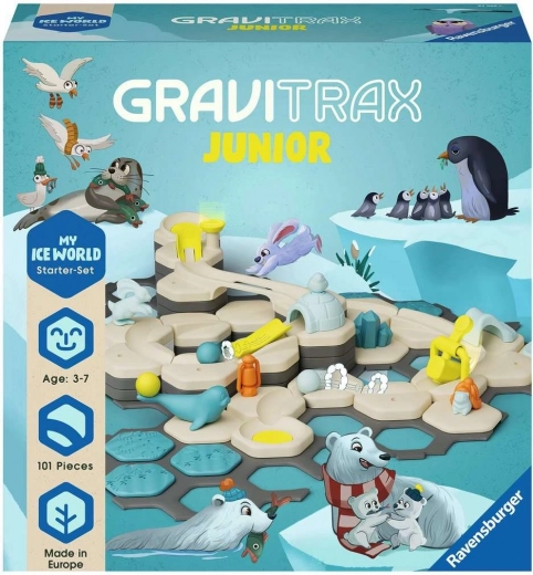 Découvrez un jeu créatif avec le coffret de démarrage GraviTrax Junior Monde glacé pour les enfants dès 3 ans. Grâce à 101 pièces, dont les accessoires d’action Balançoire et Marteau, les petits constructeurs peuvent créer immédiatement leurs propres circuits à billes. Des figurines d’animaux et de plantes en bioplastique à base de bois et des éléments décoratifs donnent vie à un monde glacé qui stimule la créativité, la motricité fine et l’imagination.