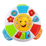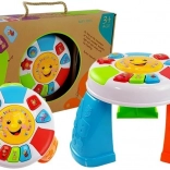 La table d’apprentissage interactive est un excellent outil pour développer l’ouïe, la vue et la motricité fine. Les éléments colorés attirent l’attention et, en jouant, les enfants s’exercent à reconnaître les formes et les couleurs, à coordonner œil–main et à se concentrer. Le grand bouton central avec soleil déclenche des rires, percussions et mélodies, tandis que les boutons de formes émettent des sons joyeux.