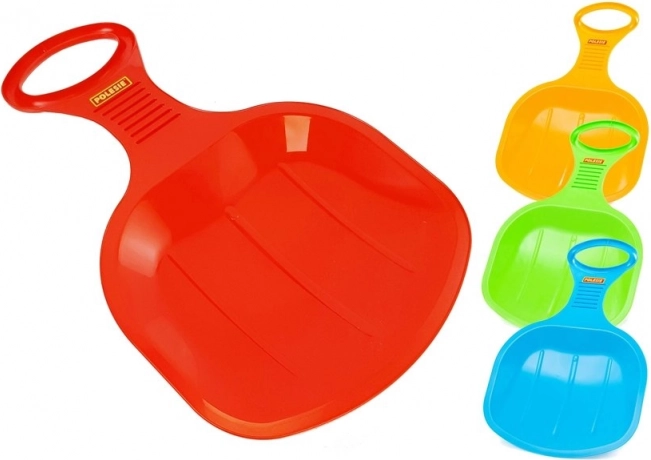 Quel enfant n’aime pas les folies hivernales ? Quel que soit l’âge ou le niveau d’autonomie, à la vue d’une colline bien enneigée, un large sourire apparaît sur chaque visage. Mais est-ce seulement chez les enfants ? POLESIE propose un produit qui garantit un bon amusement dans la neige. Il est fabriqué en plastique de haute qualité et servira longtemps à l’utilisateur. La surface de l’assise possède de fins reliefs grâce auxquels la luge glissera avec nous en descendant la pente, et non l’inverse. La poignée est large et agréable à tenir.