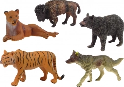 Le set comprend 6 figurines : ours, loup, jaguar, tigre, bison, lionne. Hauteur des figurines : 10 cm x 6 cm x 4 cm. Dimensions de la boîte : 45 cm x 27 cm x 7 cm.