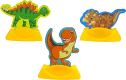 Créez vos propres œufs de dinosaures – un motif est préimprimé sur la coquille et les enfants peuvent les colorier selon leur imagination. Deux supports en forme de volcan assurent une présentation stable.