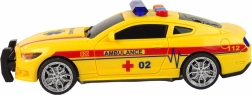Rapide et robuste, l’ambulance jaune aux marquages « Ambulance » plonge les enfants au cœur de l’action de secours. En appuyant sur les boutons, les LED bleues au‑dessus de la cabine s’allument et des sons réalistes retentissent – démarrage du moteur, klaxon et sirène d’alerte. Grâce à la propulsion à inertie, il suffit d’appuyer, de tirer vers l’arrière et la voiture part d’elle‑même vers l’avant.
