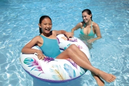 Cette bouée gonflable est un excellent choix pour les enfants dès 9 ans comme pour les adultes (jusqu’à 80 kg) qui recherchent un appui confortable et sûr pendant les jeux aquatiques. Deux poignées intégrées offrent une prise sûre lors de l’entrée dans l’eau comme pendant les moments de repos à la surface.