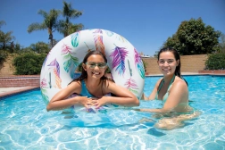 Son matériau résistant de 0,25 mm d’épaisseur supporte très bien un usage courant à la piscine comme en bord de mer. Grâce à ses motifs tropicaux avec feuilles de palmier ou flamants roses, la bouée attire le regard et apporte un style frais à votre équipement d’été.