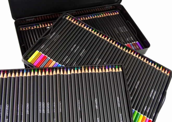 Ensemble complet pour la création: 120 crayons de couleur artistiques dans un étui métallique élégant avec 3 niveaux de 40 pièces. Les crayons ont une longueur de 17 cm et un revêtement noir pour une prise en main confortable. Organisation pratique, accès facile grâce aux bandes élastiques, certification CE et conformité à la norme EN71. Convient aux enfants dès 3 ans et aux adultes.