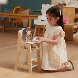 La chaise est équipée d’une tablette pratique permettant aux enfants d’installer confortablement leurs poupées et de les « nourrir » – idéale pour développer l’imagination et les compétences sociales.