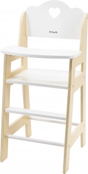 Cette chaise au style soigné, mêlant bois naturel et blanc, est un excellent accessoire pour tous les petits soigneurs. Les enfants peuvent « nourrir » leurs poupées en tout confort, en prendre soin et développer leur imagination ainsi que leurs compétences sociales. La chaise est conçue pour des poupées jusqu’à 38 cm et convient dès 3 ans.