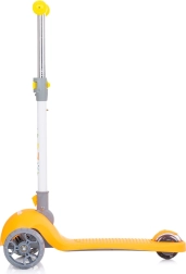 Trottinette pour enfants Chipolino Funky Orange, légère et stable, avec roues LED colorées, guidon réglable en hauteur et plateau antidérapant pour une conduite sûre et amusante. Idéale pour les enfants dès 3 ans, avec une capacité de charge de 50 kg.