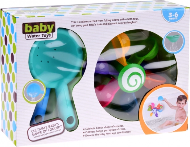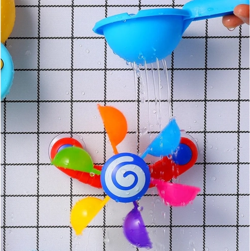 Permettez à votre enfant de s'amuser avec des cuillères colorées et mobiles qui tournent lorsqu'on verse de l'eau dessus, aidant ainsi l'enfant à comprendre les concepts de mouvement et de rétroaction. Ce jouet soutient le développement moteur, les fonctions cognitives et les capacités de coordination. Pendant le jeu, l'enfant peut apprendre les couleurs, compter et imaginer différentes histoires. Ce jouet pour le bain est facilement déplaçable et démontable, permettant son positionnement sur les côtés de la baignoire, de la douche ou de la piscine. L'arc-en-ciel coloré des cuillères commence à tourner lorsque l'eau se diffuse, stimulant l'ouïe de l'enfant.