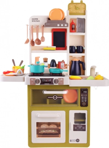 Une cuisine pour enfants élégante en coloris crème-vert ravira les petits chefs avec des effets réalistes. Elle offre de la vapeur sur le brûleur, de l’eau courante au robinet, des effets lumineux et sonores, ainsi qu’un riche ensemble de 49 accessoires pour des heures de jeu.