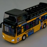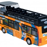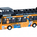 Ce modèle détaillé de bus urbain à impériale ravira chaque enfant. La robuste combinaison de métal et de plastique garantit la résistance, tandis que les portes coulissantes ouvrantes et l’éclairage intérieur apportent une expérience de jeu authentique.
