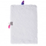 Un magnifique journal blanc avec des éléments scintillants qui enchante toute fille. Il contient 96 lignes pour écrire facilement des pensées secrètes. Il peut être décoré selon l'imagination personnelle, devenant ainsi unique et le seul de son genre. Assuré par une clé pour garder tous les souhaits et pensées en sécurité.