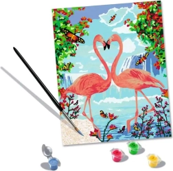 Peinture par numéros Flamants amoureux est un ensemble créatif parfait pour les enfants et les adultes qui souhaitent développer leurs compétences artistiques en utilisant une technique simple !